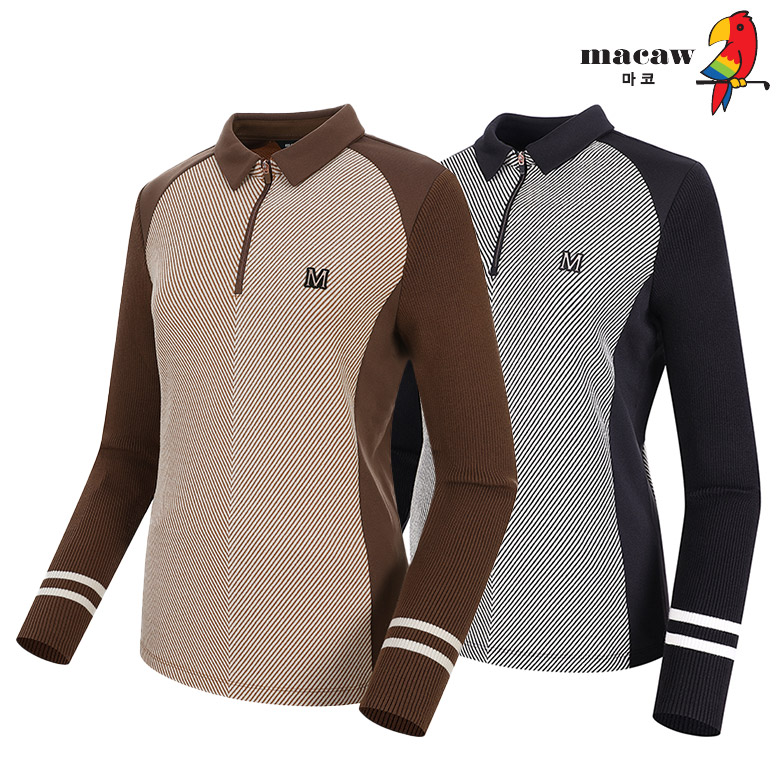 (여성)사선 패턴 카라 집업 티셔츠_MMW4TS62