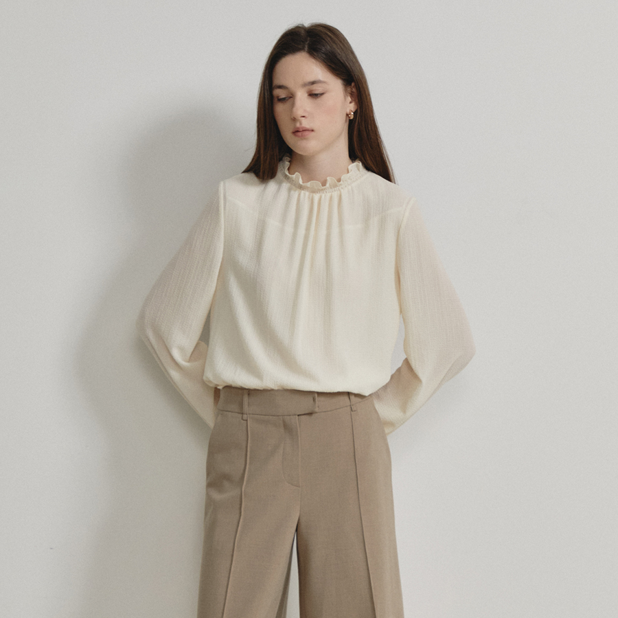 (더아이잗) 엠보 텍스처 프릴넥 블라우스 IR9A0BL081