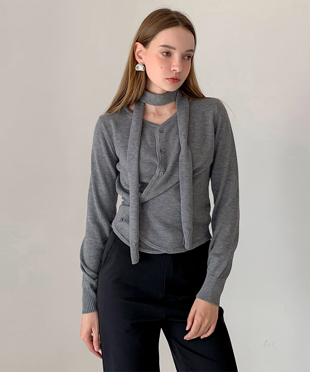 사이드 버튼 투웨이 스카프 가디건 (3colors)