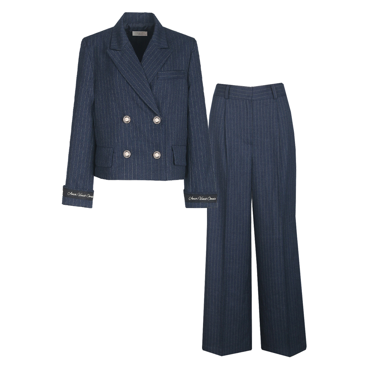 SET 여성 줄지 봄가을 정장 자켓+통팬츠 세트