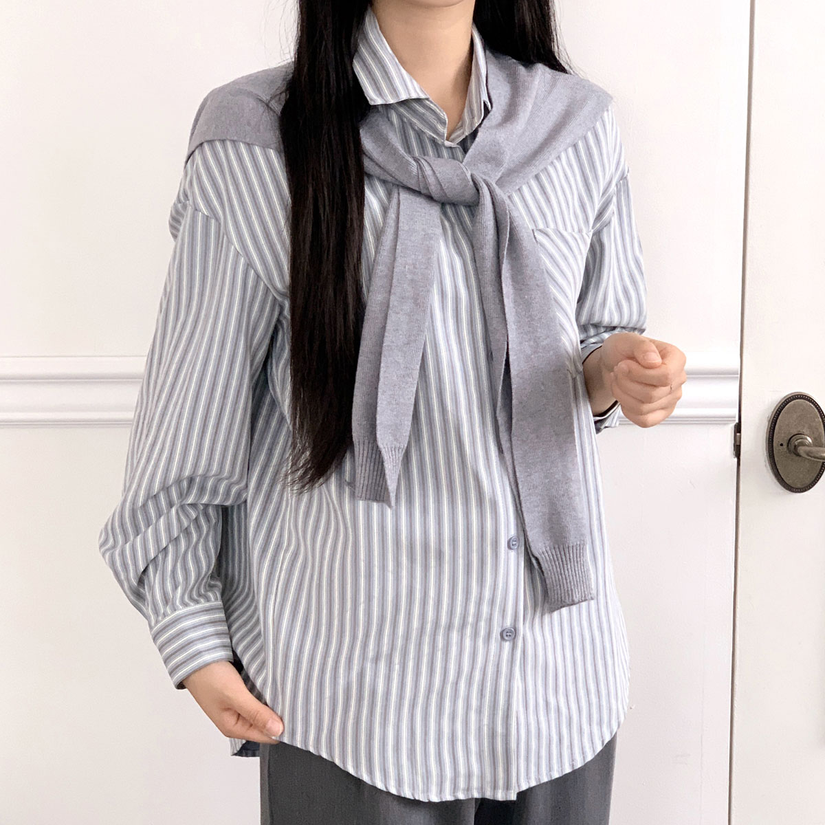 멀티 스트라이프 셔츠(니트 숄 set)