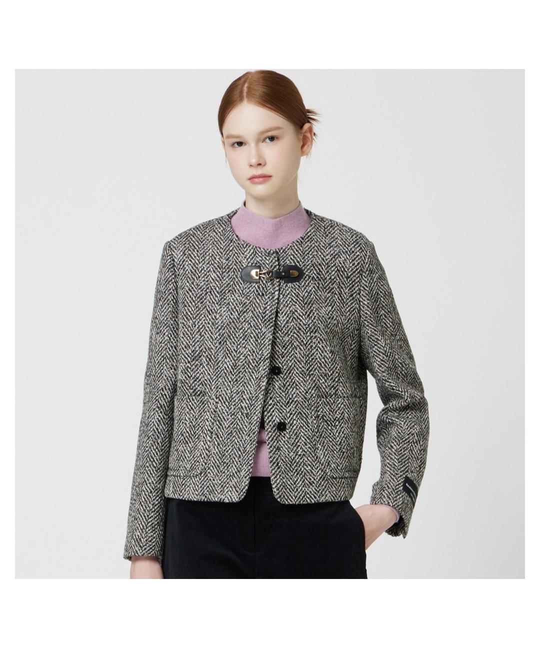 [씨씨콜렉트] 라운드넥 버클 장식 트위드 자켓_C254MSF038