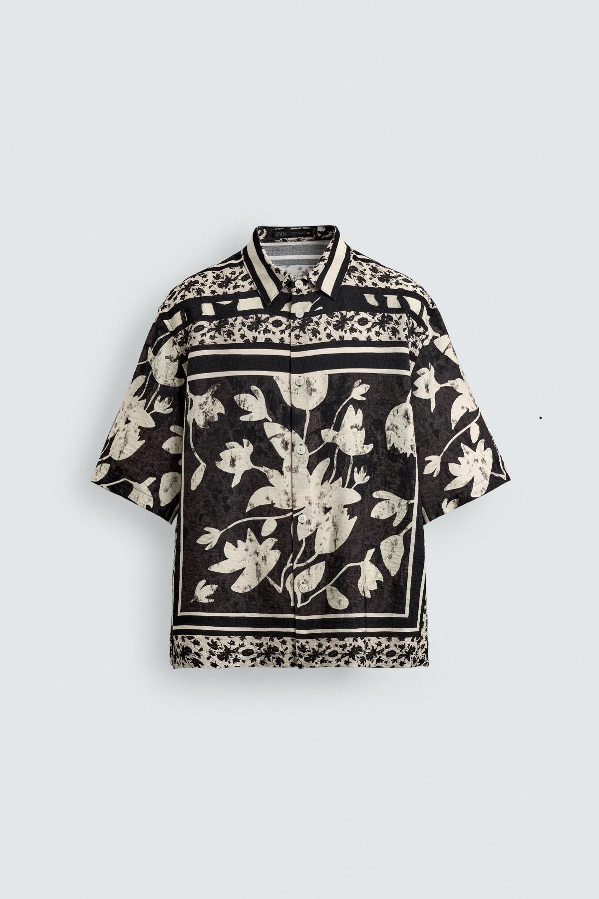 자라 트로피컬 프린트 오버핏 반팔 셔츠 1034/103 BLACK