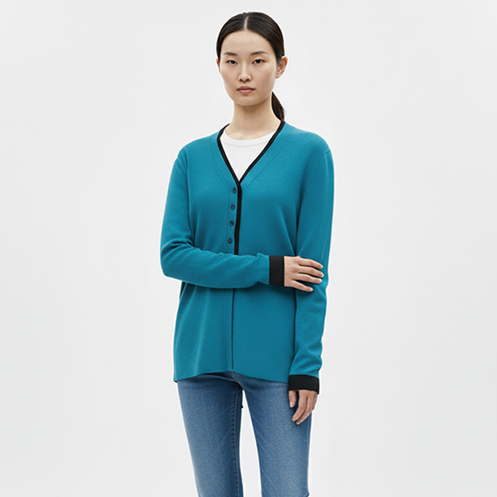 [샵앤] 여성 Y단추 배색포인트 간절기 니트 가디건 BOM-WCD-20834