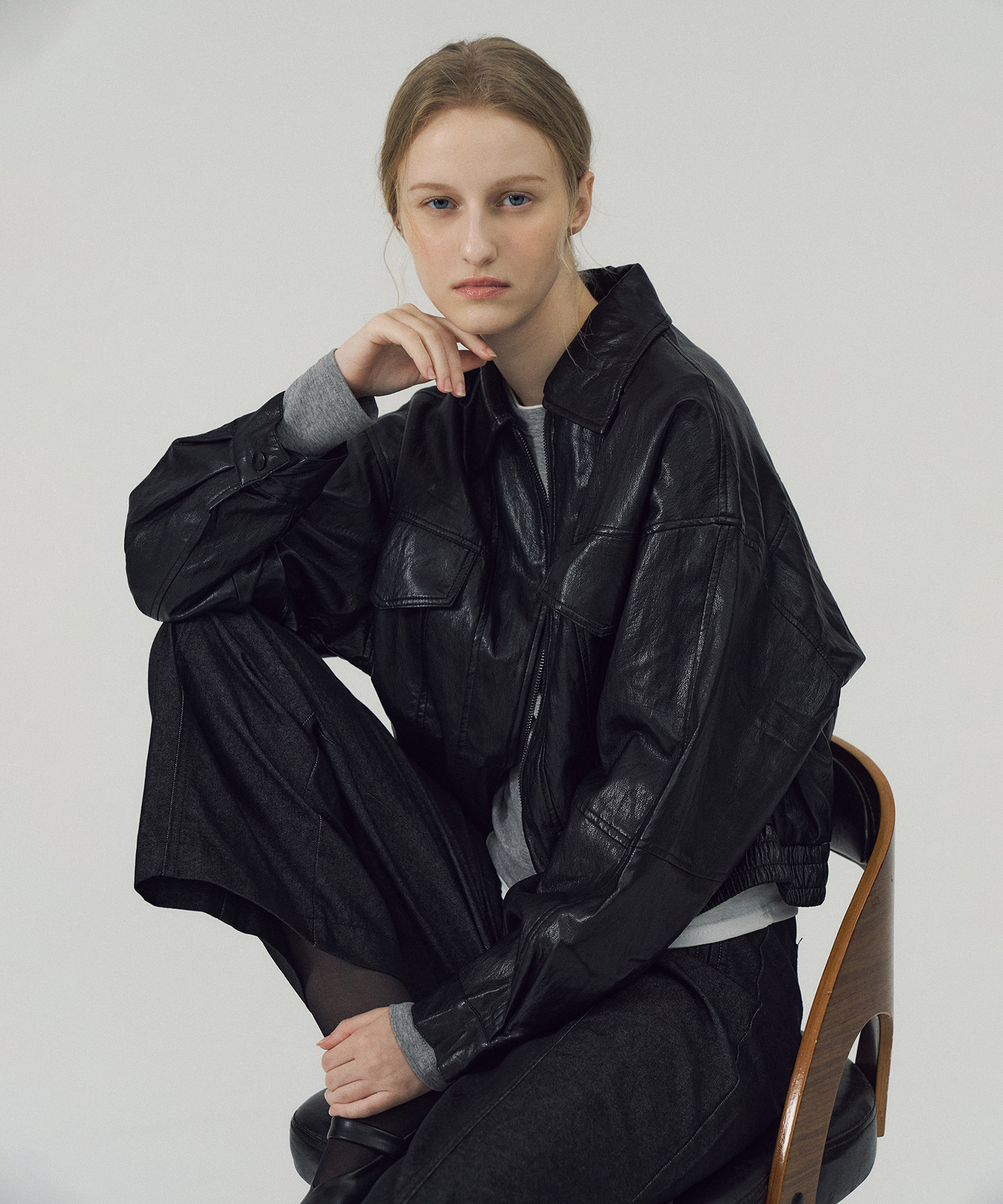 집업 페이크 레더 자켓_CC5AJ103
