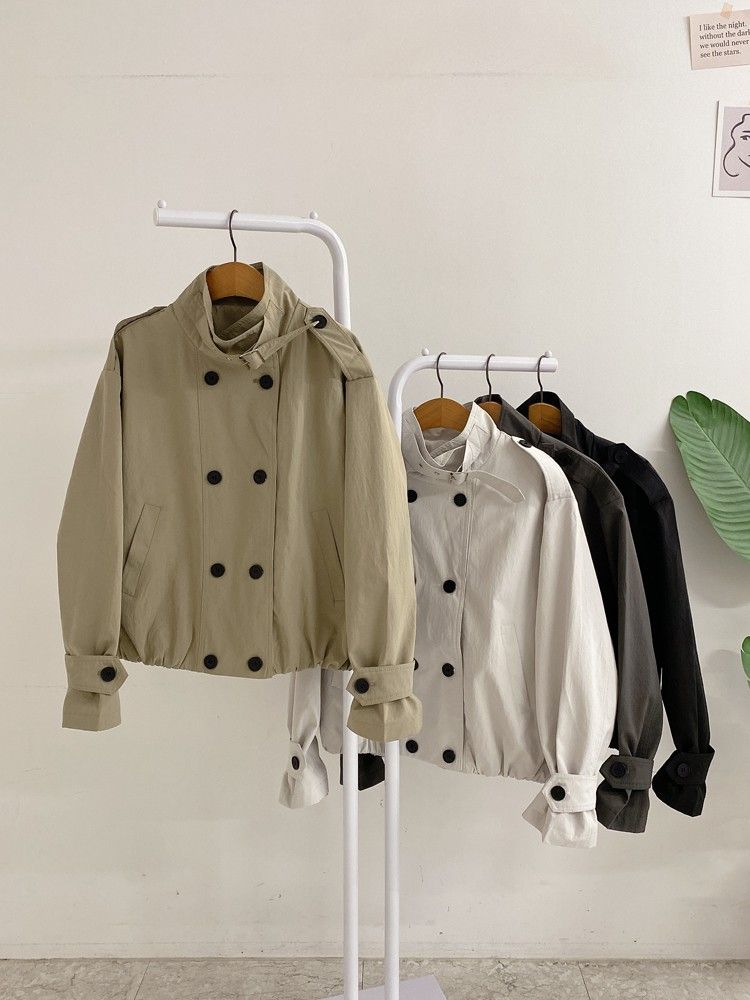 [허니제이] 에르밀 하이넥 버클 더블 포켓 트렌치 자켓(4color)