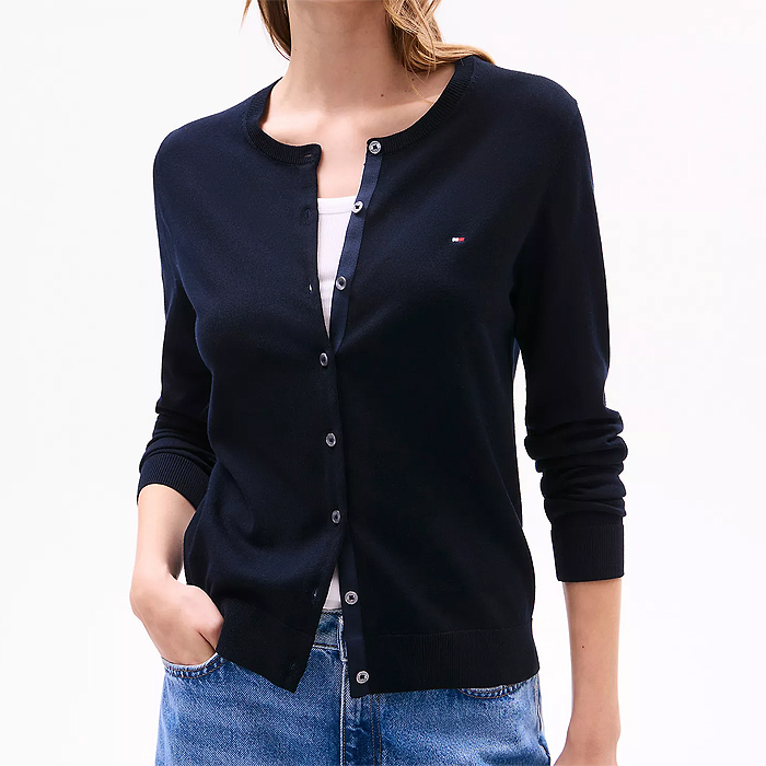 타미힐피거 여성 라이트웨이트 버튼업 가디건 Navy
