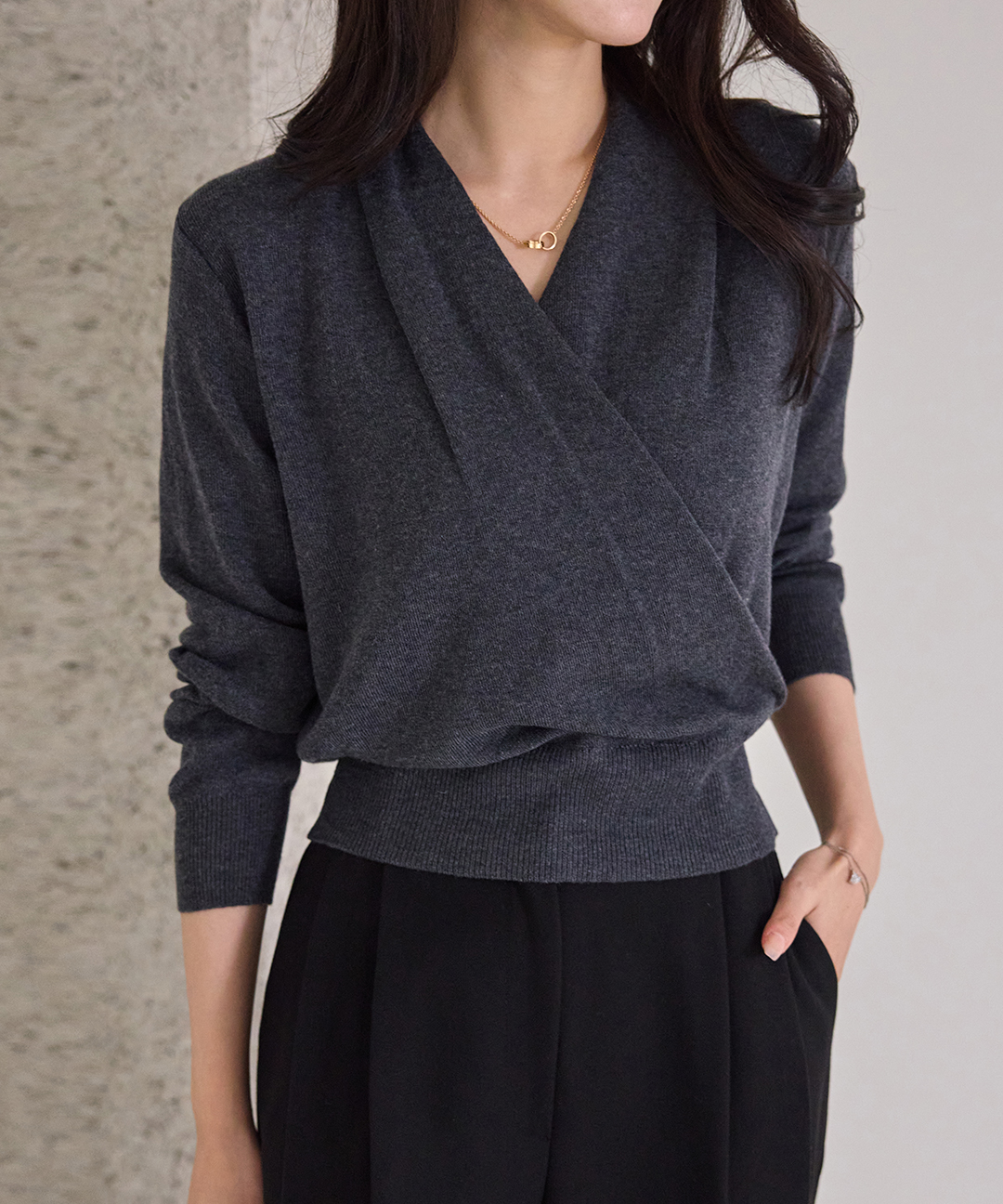 [모리스커밍홈] 숄카라 겹브이넥 랩 니트_M2510KN646C