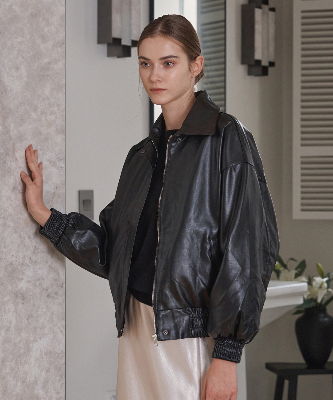 [미니멈 에브리데이]카라넥 페이크 레더 자켓 (EB3JK019D)