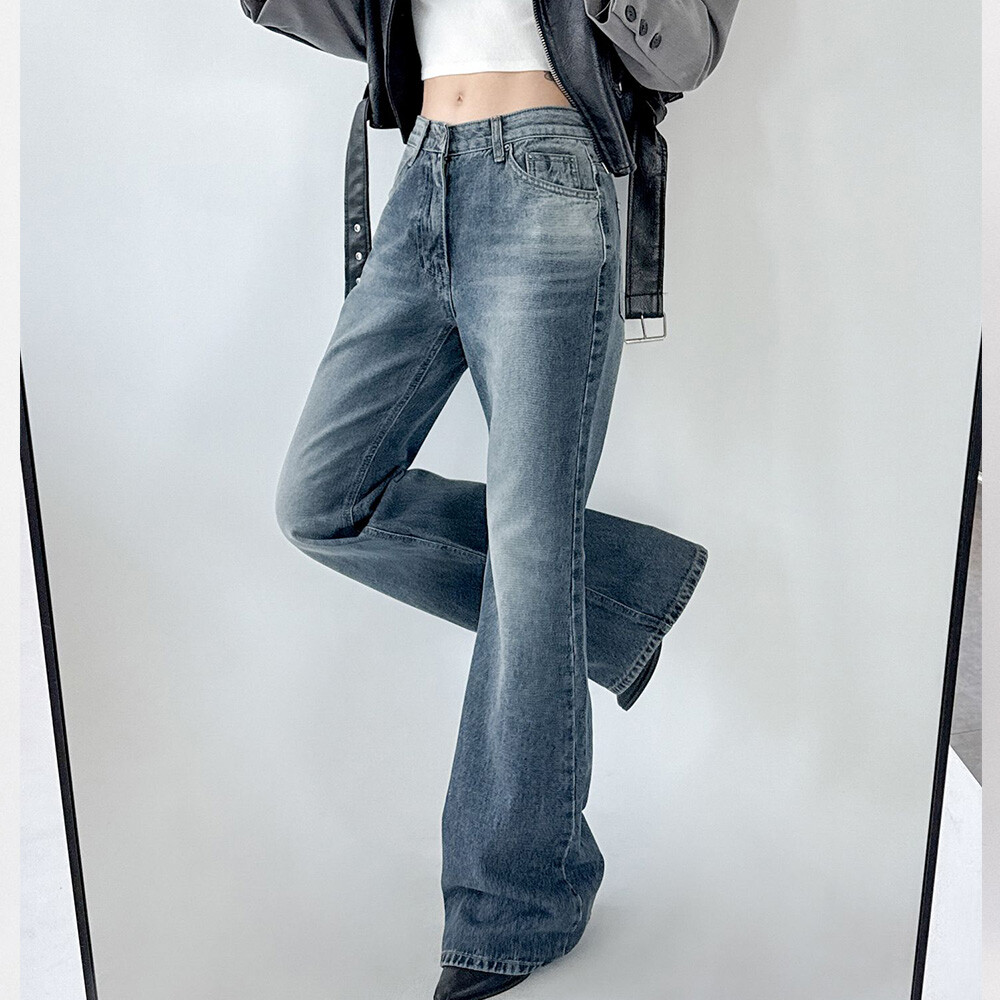 [옷자락] 여자 부츠컷 새깅 로우라이즈 키큰녀 슬림 면 청바지