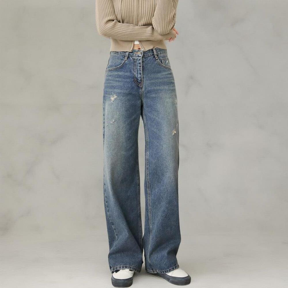 [옷자락] 여성 로우라이즈 새깅 맥시 와이드핏 코튼 핀턱 바지