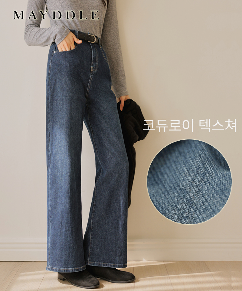 [영상핏][빠른배송]소프트말랑 코듀로이 데님팬츠 / 유니크 중청 진청 S M L 텐션 스판 데일리 캐주얼 빈티지 와이드 따뜻한 골덴청바지 코듀바지 출근 직장인 딸선물 꾸안꾸코디