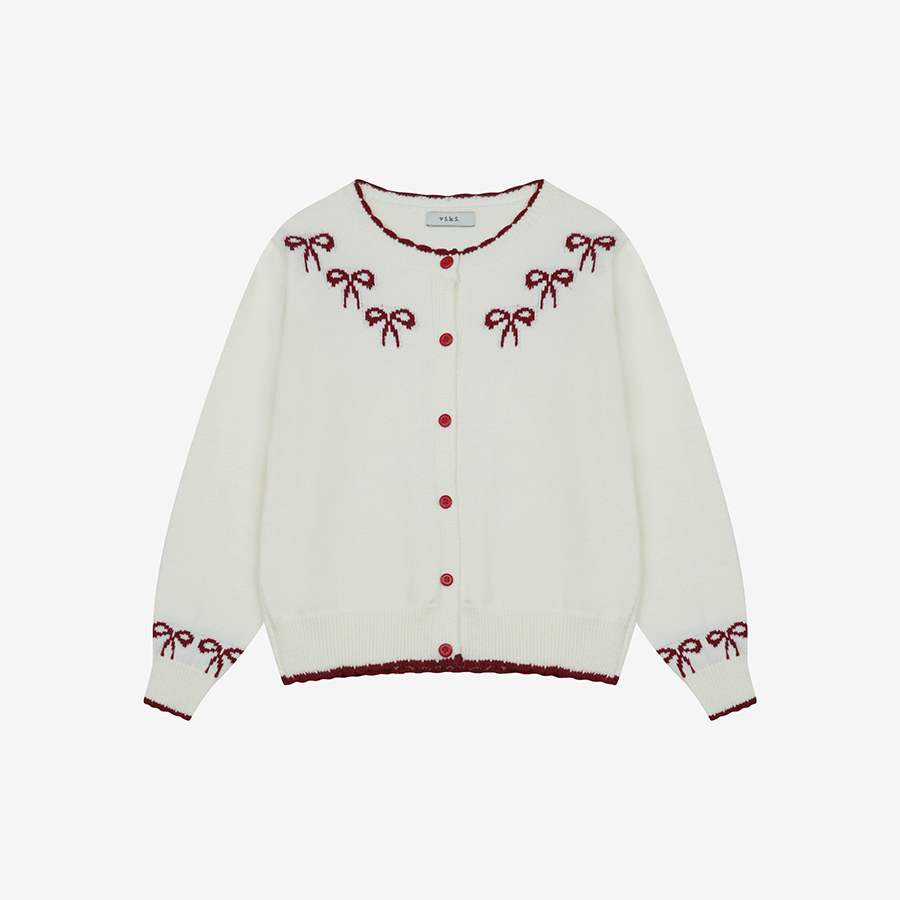 리본 자가드 네크 포인트 가디건 (TLCCZ2992)