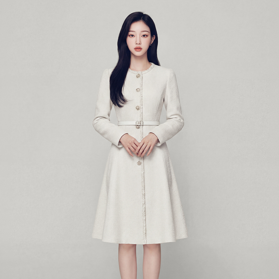 (지고트) 울 블렌드 트위드 라운드넥 플레어 원피스 JRAA0OP822