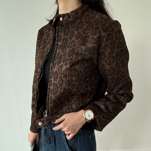 레오파드 스웨이드 크롭 집업 자켓