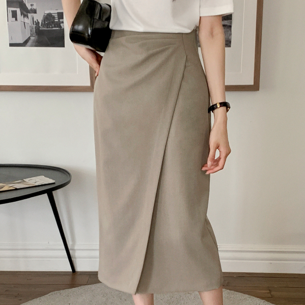 [프롬리리컬] (하체군살커버핏/고급우아♥) 비올렛 랩 사이드 셔링 펜슬 롱 스커트 sk7428