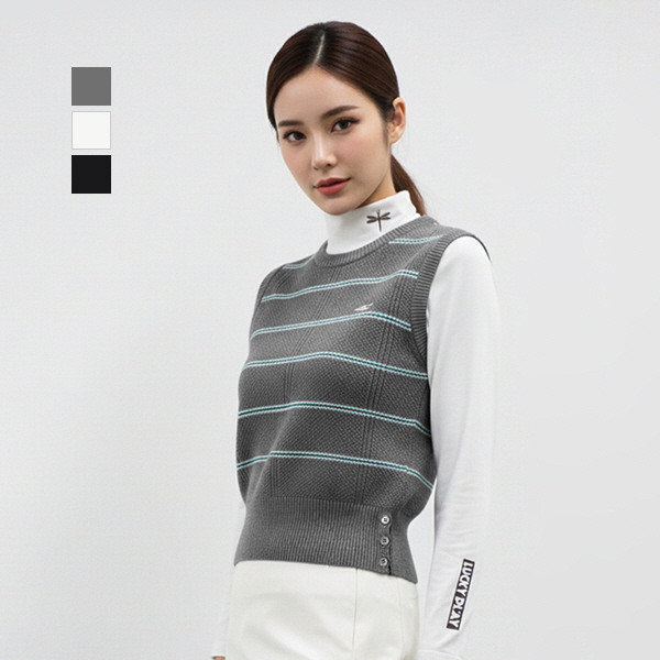 럭스골프 여성 라운드넥 스트라이프 니트 베스트 조끼 LB25A516W