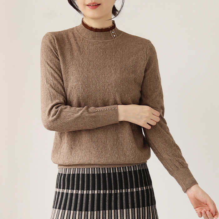 [웬디즈갤러리]넥 큐빅진주 반목 니트 /반폴라 소프트 레이어드 TKN114