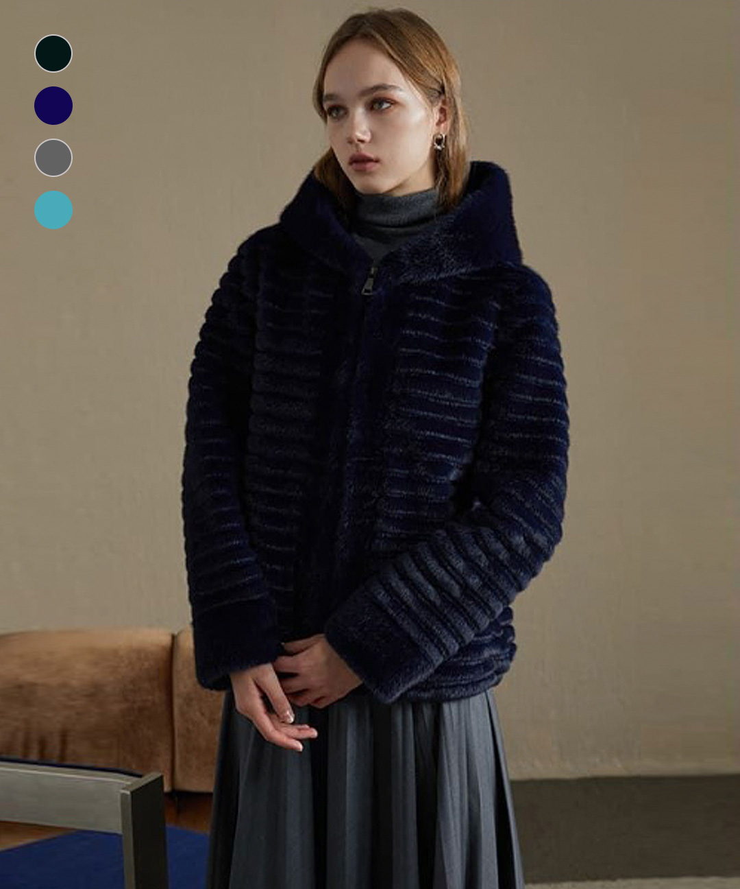 [엘루아] VEGAN FAUX 밍크 후드 하프코트 5종택1