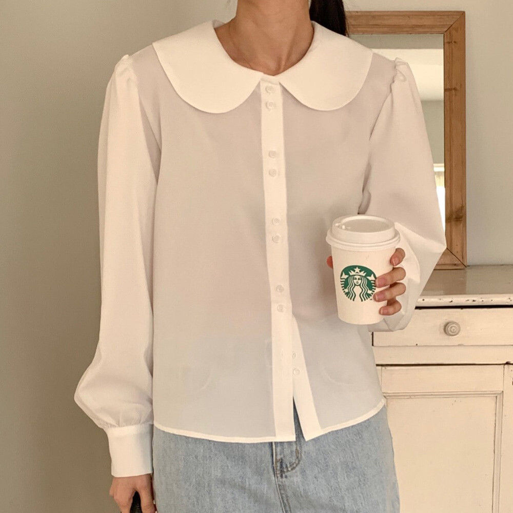 [나야홍] 빅사이즈 503 둥근카라퍼프블라우스 DDDU059