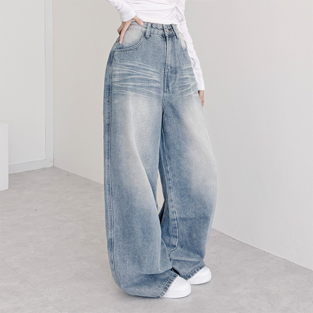 [코키코키] [퀄리티보장] 레거 워싱 포인트 플레어 와이드 진 데님