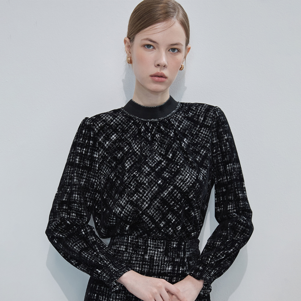 [데코] (본사직영) 메탈사 하프넥 체크 블라우스-DCBAD4T01W