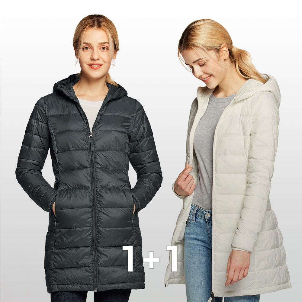 [1+1] 여성 롱 경량패딩 자켓 점퍼 체형커버 패딩