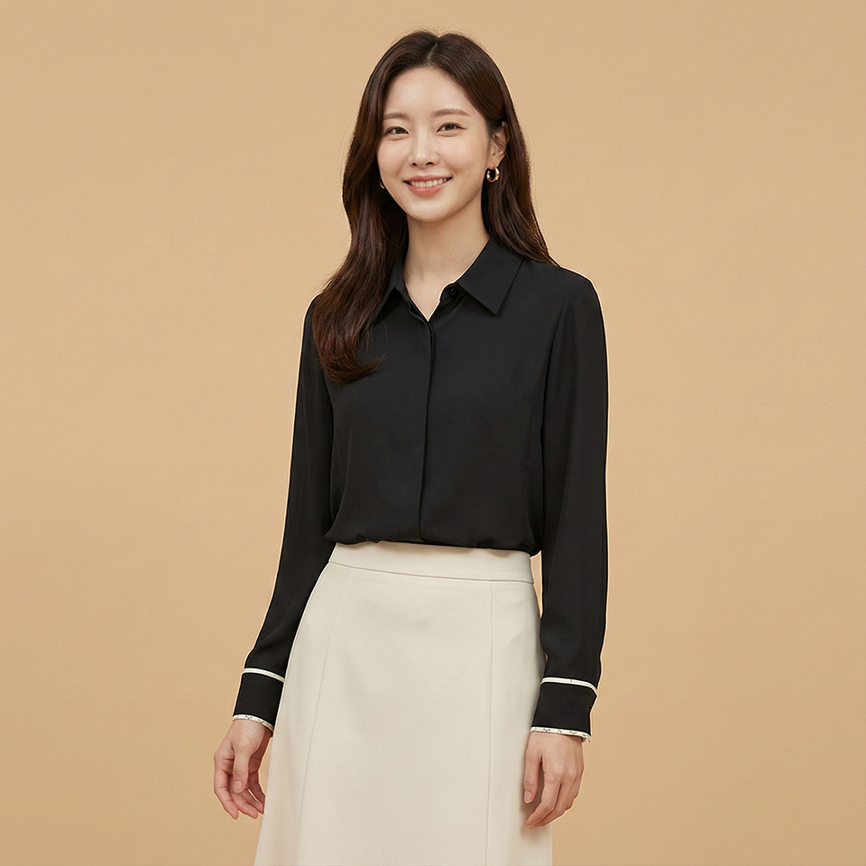 [꼼빠니아]라인 배색 블라우스-CW23BF0201732B