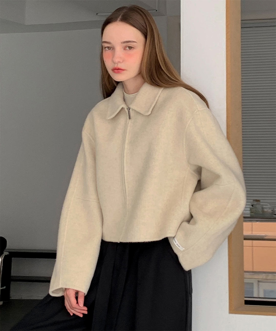 핸드메이드 울 카라 베이직 집업 자켓 (2colors)
