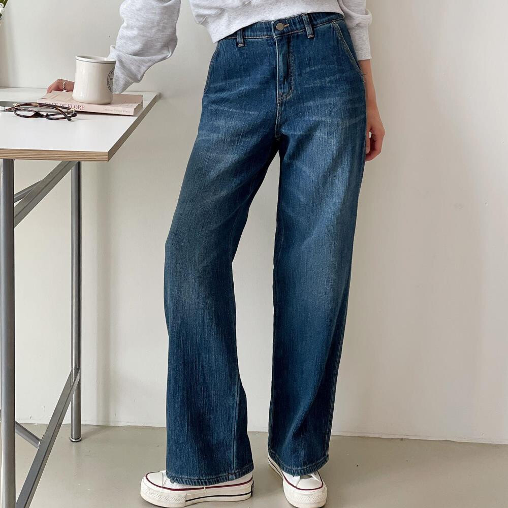 [옷자락] 여자 속밴딩 루즈 와이드핏 구김 워싱 가을 면 청바지