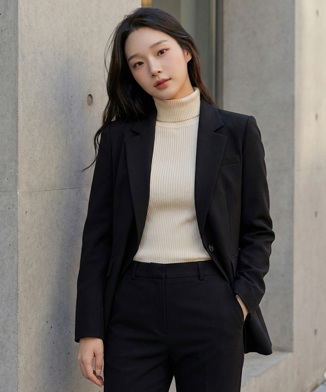 싱글 원버튼 테일러드 자켓 LFFJOA01_BK