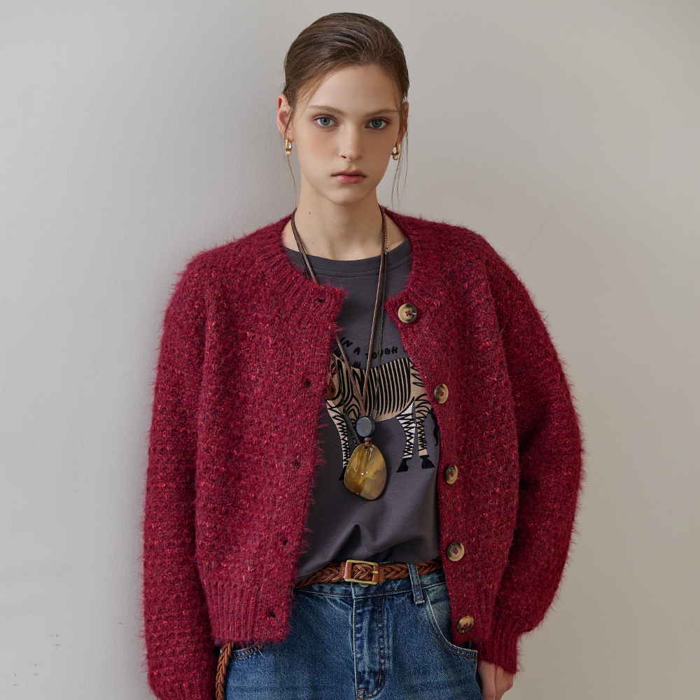 [엠그라프] 소프트 텍스처 컬러 믹스 라운드넥 가디건