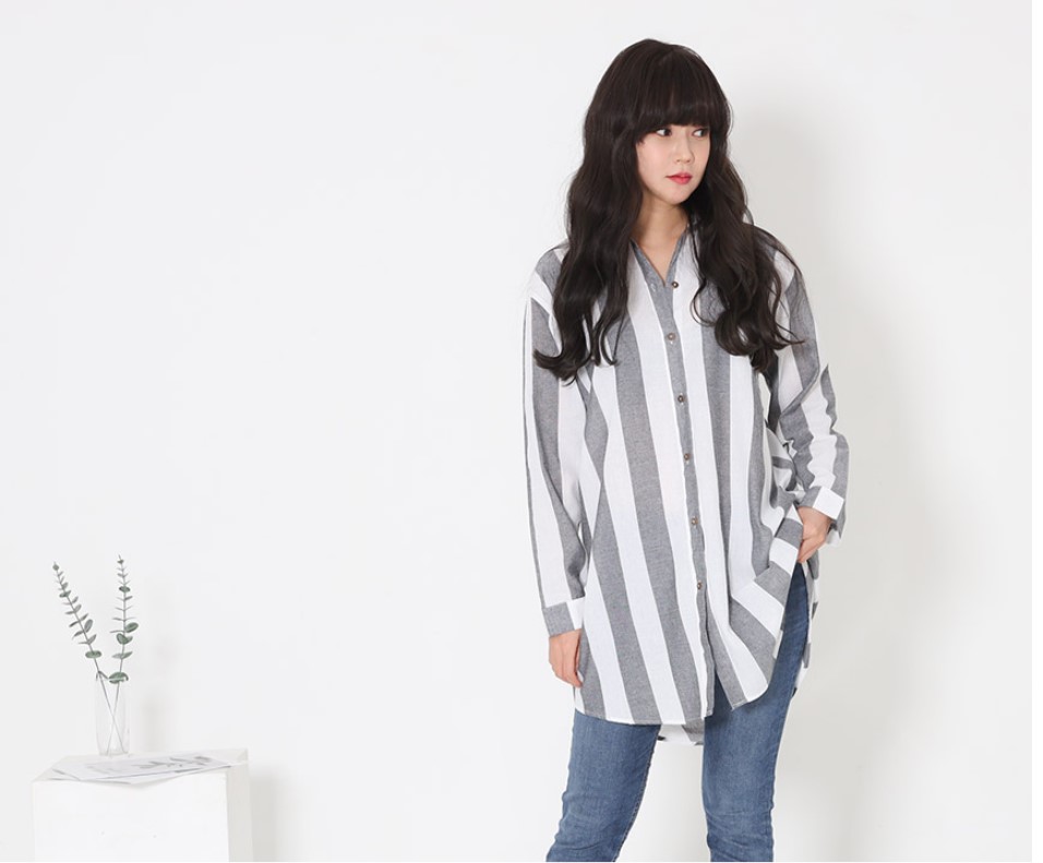 페니다 굵은줄 스트라이프 박스롱 마남방 여자 여성 셔츠