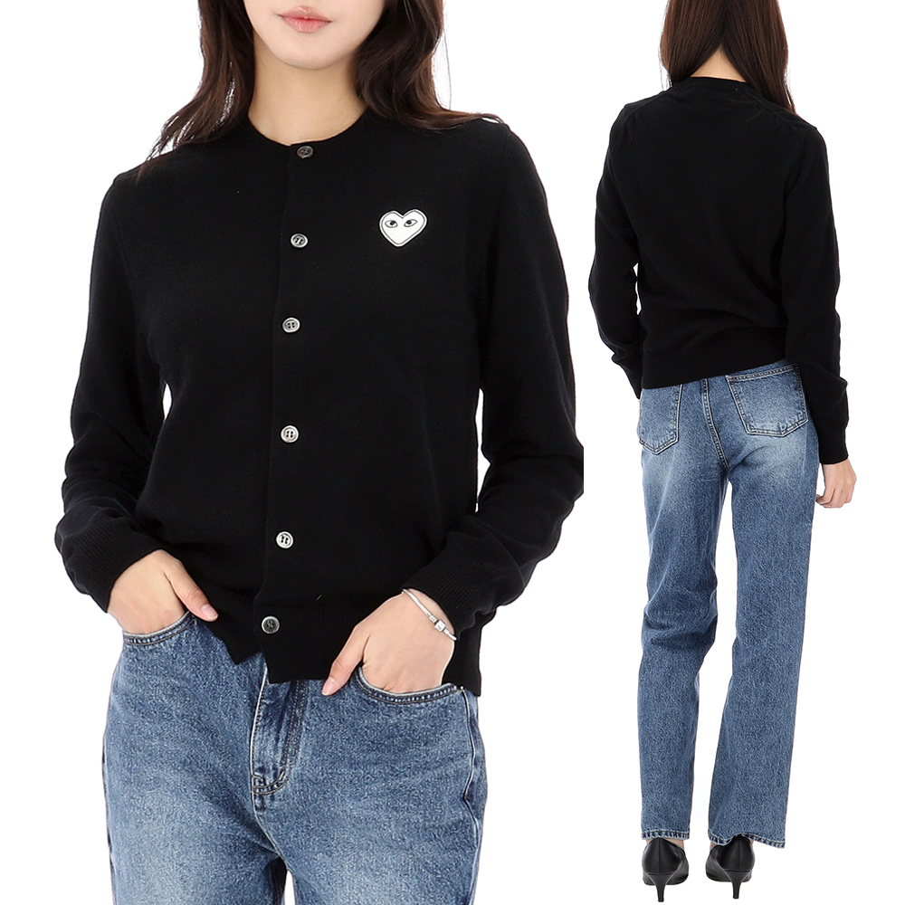 꼼데가르송 55사이즈 럭키찬스 화이트 하트 와펜 가디건 AX N061 BLACK