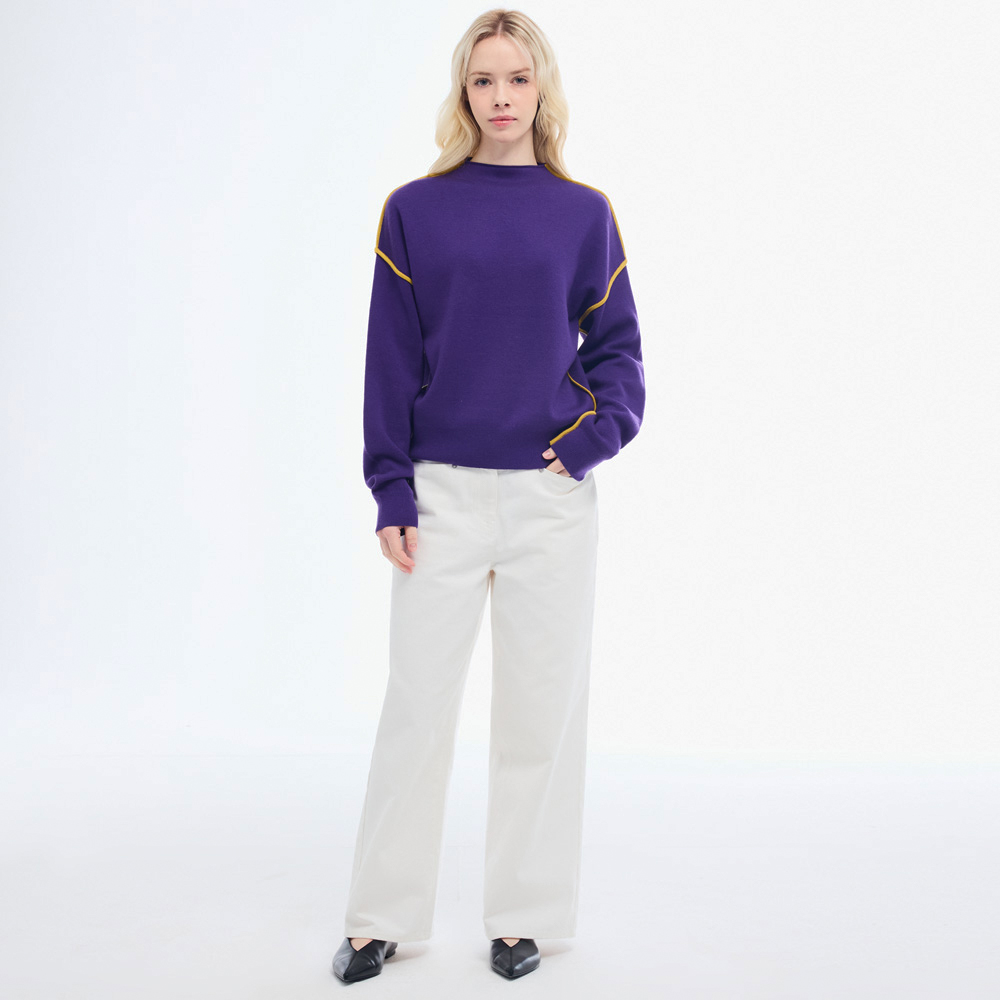 SUNRISE STUDIO 울 혼방 리버서블 니트 탑-PURPLE&YELLOW