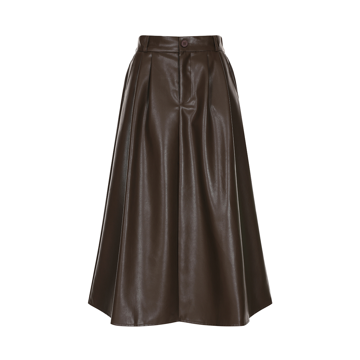 라임스토리 뒷밴딩 투턱 플레어 레더 스커트 LJASK516
