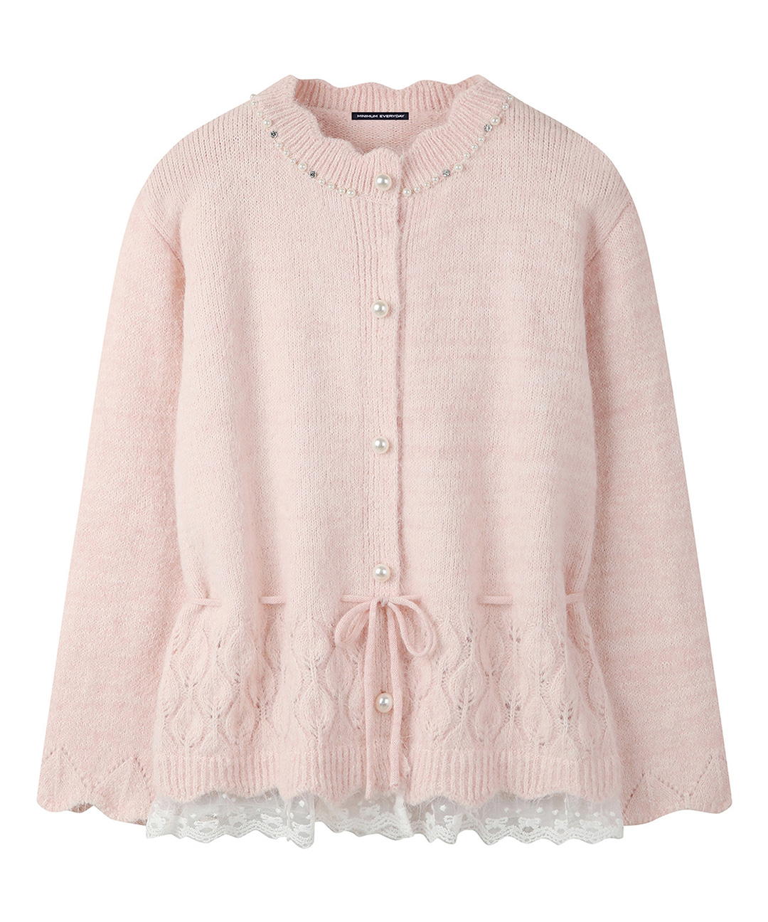 [미니멈 에브리데이]물결 진주넥 레이스 스트링 울 가디건 (EB4CK039D)