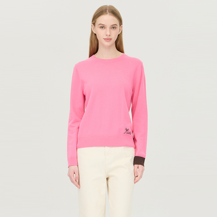 [베네통]컬러 블록 리본 자수 니트_BAKPF9561PK