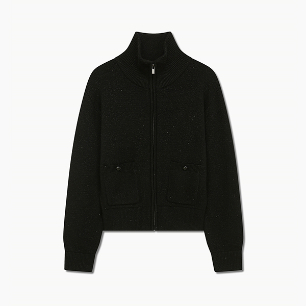 울 글리터 하이넥 집업 가디건_TSKCDP80040_BK