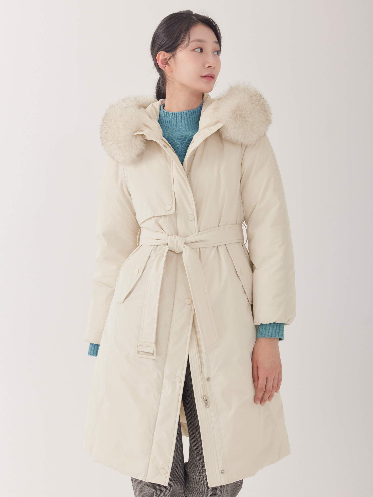 (2컬러) 구스 폭스후드 트렌치형 다운 패딩 LCDWOB22