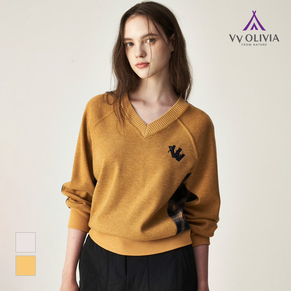 [25 신상] 체크패치 브이넥 맨투맨_VVCAL5W9361