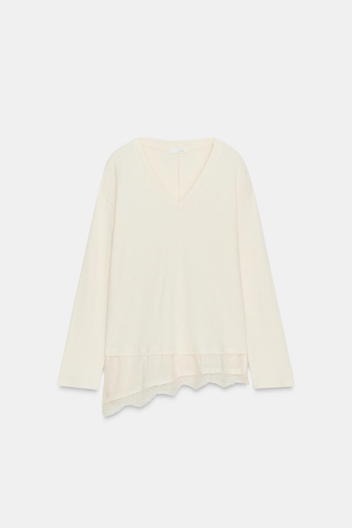 자라 레이스 브이넥 니트 탑 2298/603/712 ECRU