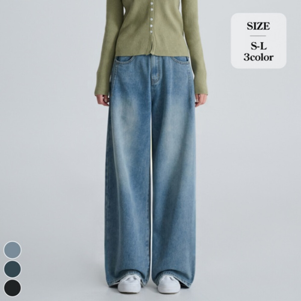 [포레스트핏] 여성 사이드 절개 워싱 와이드 청바지 (J2539)