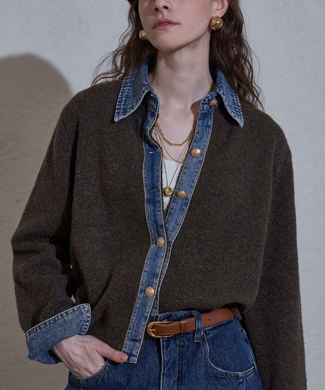 워싱 데님 카라 배색 니트 가디건 LM11CD701L