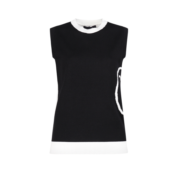 럭스골프 여성 라운드넥 배색 니트 베스트 조끼 GQ25A516W
