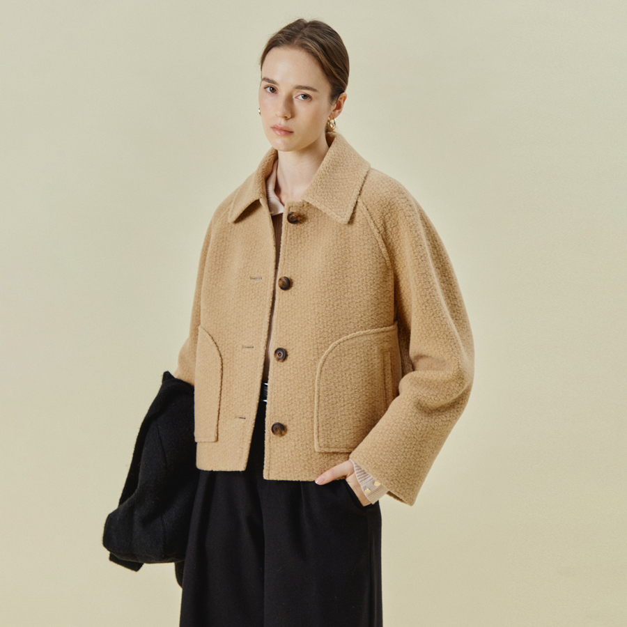 (더아이잗) 울 블렌드 부클레 래글런 숏 코트 IRVP0CT513