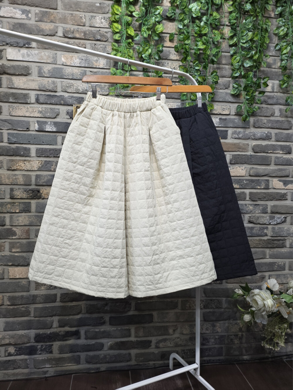 [퐁당] 체크 퀼팅 누빔 포켓 밴딩 와이드 팬츠