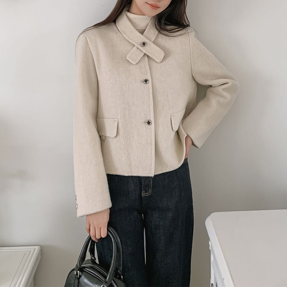 [에르디테] [세트] 겨울 양모 숏 자켓 +쁘띠 머플러 하객룩 코디 3컬러