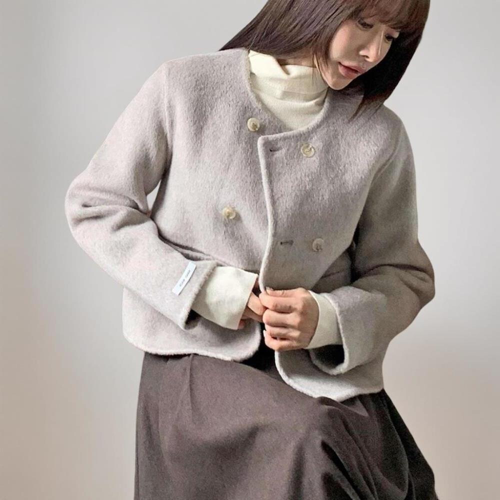 [옷자락] 여성 심플 노카라 울혼합 핸드메이드 숏 재킷