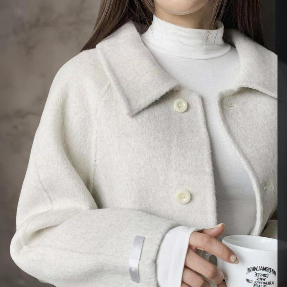 [옷자락] 여성 울혼합 핸드메이드 카라넥 원버튼 숏 재킷